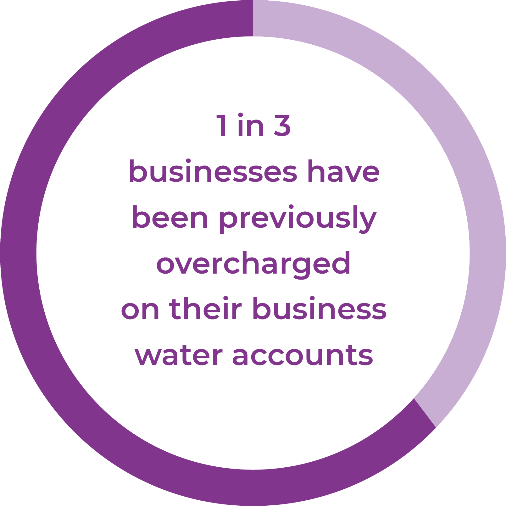 Statistics show that one in three businesses have been previously overcharged on their business water accounts. We will claim this back for you. Are you confident you have been correctly charged over the last 5 years?
